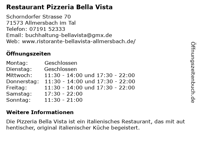 Branchen & Suchbegriffe zu Restaurant Pizzeria Bella Vista:bella, caterer, pizzeria, restaurant, restaurant-lieferservice, restaurants, vista |