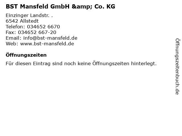 | Öffnungszeiten BST Mansfeld GmbH & Co. KG in Allstedt anzeigen | |