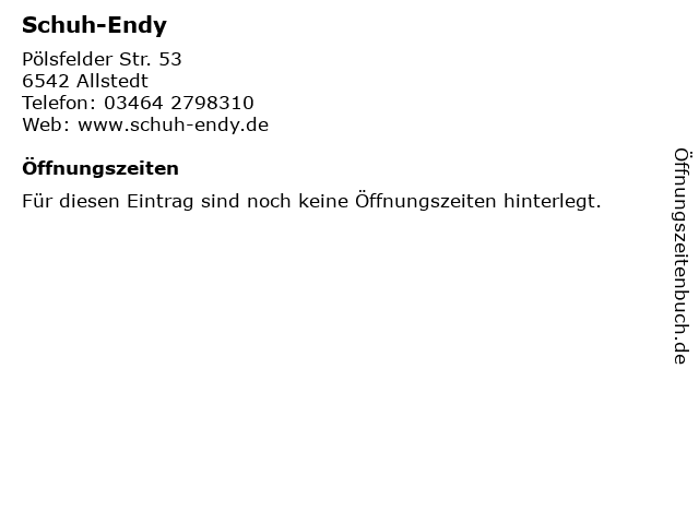 | Öffnungszeiten Schuh-Endy in Allstedt anzeigen | |