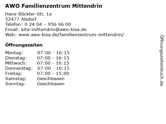 Branchen & Suchbegriffe zu AWO Familienzentrum Mittendrin:awo, familienzentrum, kinderbetreuung, kindergarten, kita, mittendrin |