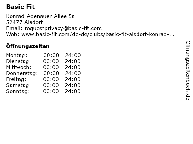 | Öffnungszeiten Basic Fit in Alsdorf anzeigen | |