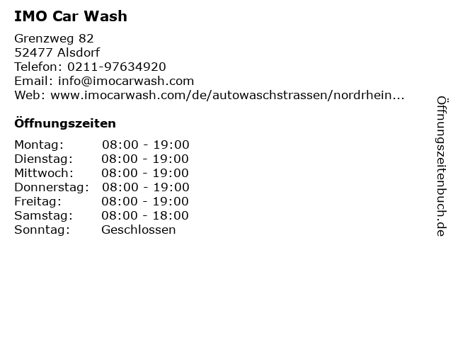 | Öffnungszeiten IMO Car Wash in Alsdorf anzeigen | |