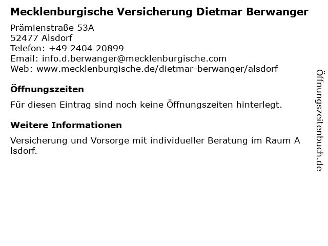 | Mecklenburgische Versicherung Dietmar Berwanger anrufen | |