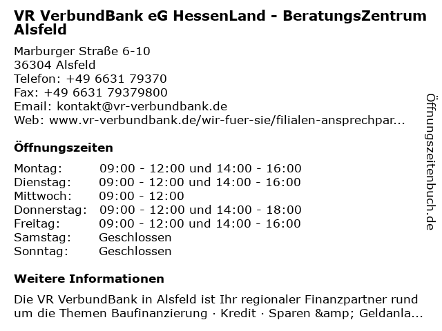 Branchen & Suchbegriffe zu VR VerbundBank eG HessenLand - BeratungsZentrum Alsfeld:altersvorsorge, bank, beratung, beratungszentrum, eg, geldanlage, geldautomat, girokonto, hessenland, kontoauszugsdrucker, kredit, online-banking, tagesgeld, verbundbank, vr |