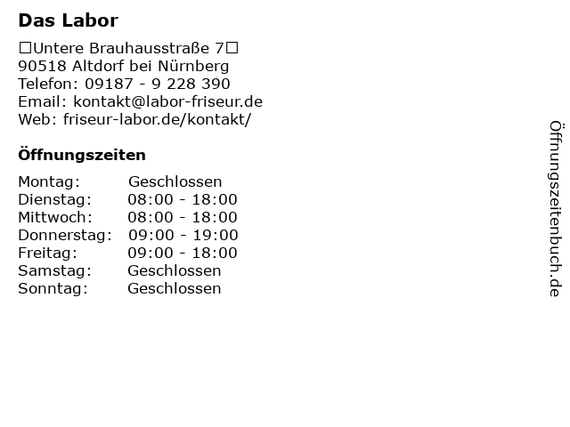 | Öffnungszeiten Das Labor in Altdorf bei Nürnberg anzeigen | |
