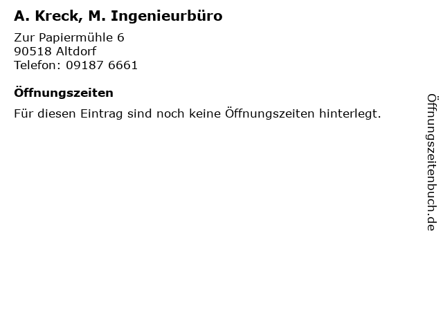 | Öffnungszeiten A. Kreck, M. Ingenieurbüro in Altdorf anzeigen | |