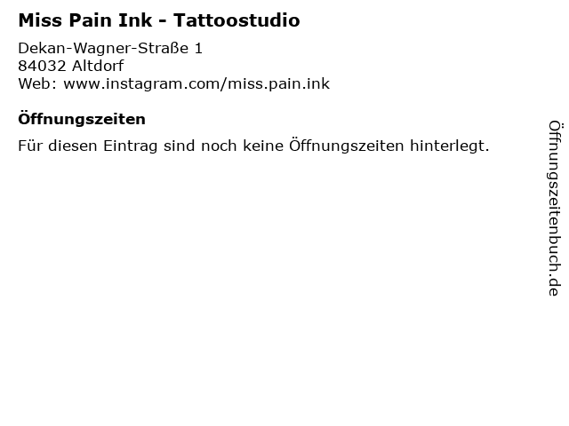 | Öffnungszeiten Miss Pain Ink - Tattoostudio in Altdorf anzeigen | |