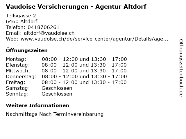 Branchen & Suchbegriffe zu Vaudoise Versicherungen - Agentur Altdorf:agentur, vaudoise, versicherungen, versicherungsagentur, versicherungsagenturen, versicherungsberater, versicherungsbüro, versicherungsschutz, versicherungsservice |