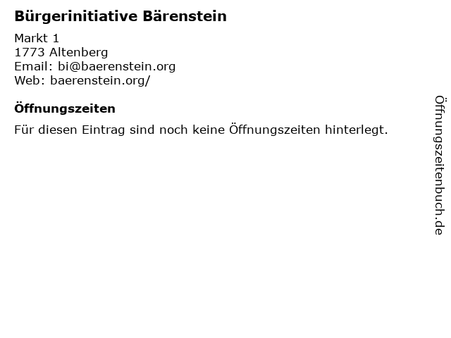 | Öffnungszeiten Bürgerinitiative Bärenstein in Altenberg anzeigen | |