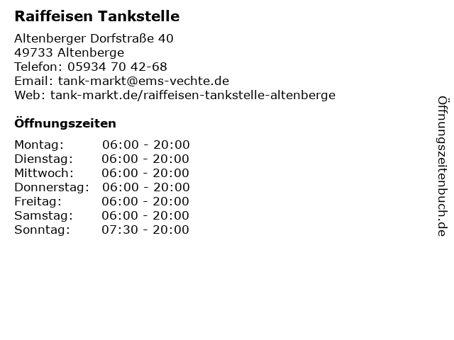| Öffnungszeiten Raiffeisen Tankstelle in Altenberge anzeigen | |