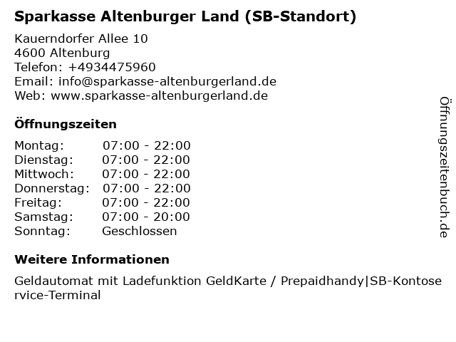 Branchen & Suchbegriffe zu Sparkasse Altenburger Land (Geldautomat):altenburger, geldautomat, land, sparkasse |