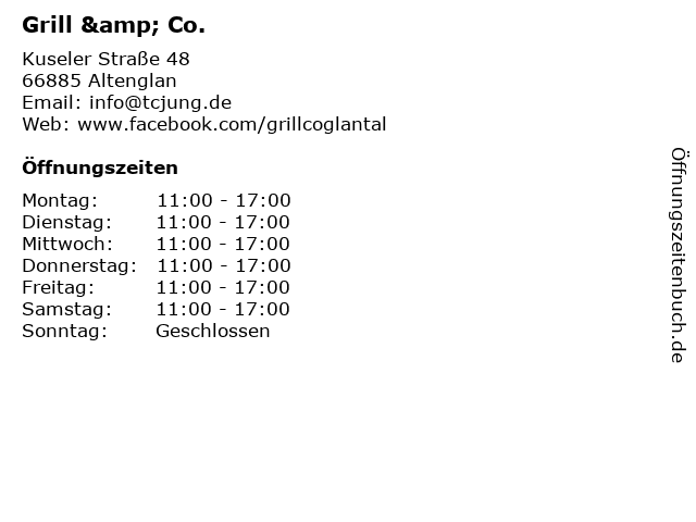 | Öffnungszeiten Grill & Co. in Altenglan anzeigen | |