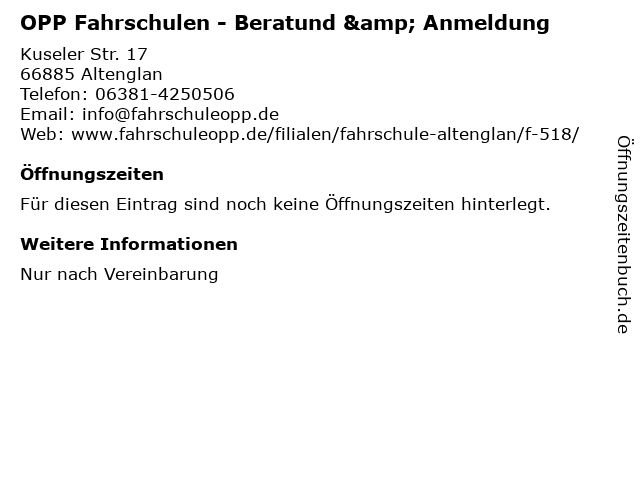 | OPP Fahrschulen - Beratund & Anmeldung anrufen | |