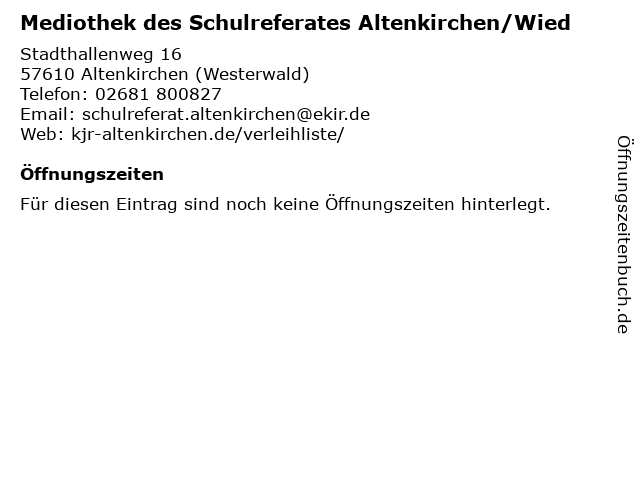 | Mediothek des Schulreferates Altenkirchen/Wied anrufen | |