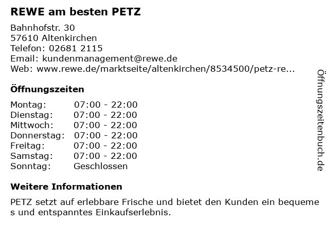 | Öffnungszeiten REWE am besten PETZ in Altenkirchen anzeigen | |