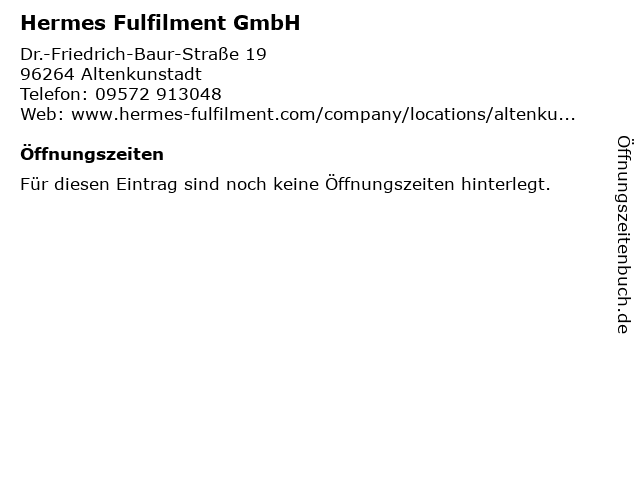 | Öffnungszeiten Hermes Fulfilment GmbH in Altenkunstadt anzeigen | |