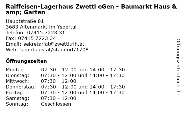 Branchen & Suchbegriffe zu Raiffeisen-Lagerhaus Zwettl eGen - Baumarkt Haus & Garten:abteilungen, agrar, baumarkt, baustoffe, brennstoffe, egen, fachhandel, garten, haus, heizöle, lagerhaus, raiffeisen, sämtliche, zwettl |