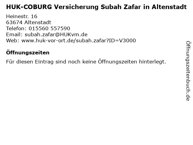 | HUK-COBURG Versicherung Subah Zafar in Altenstadt anrufen | |