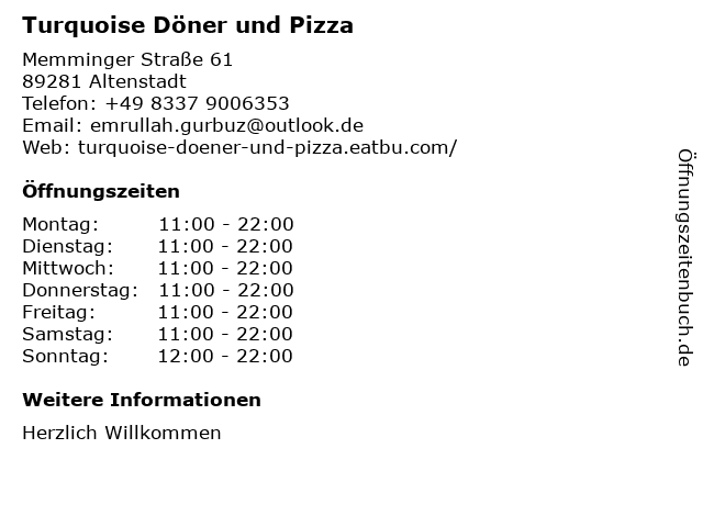 Branchen & Suchbegriffe zu Turquoise Döner und Pizza:döner, pizza, turquoise |