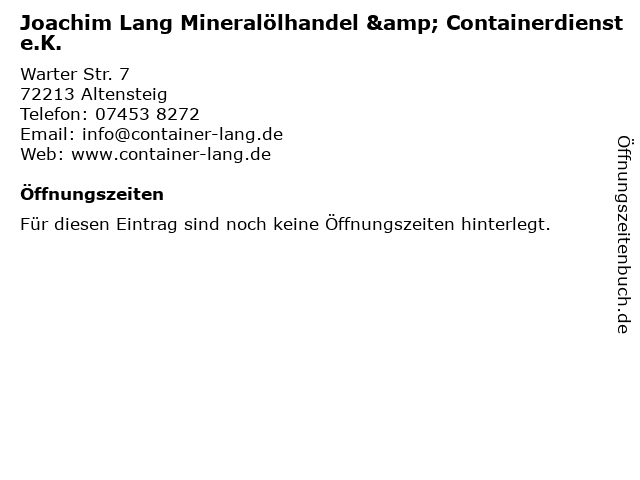 | Joachim Lang Mineralölhandel & Containerdienst e.K. anrufen | |