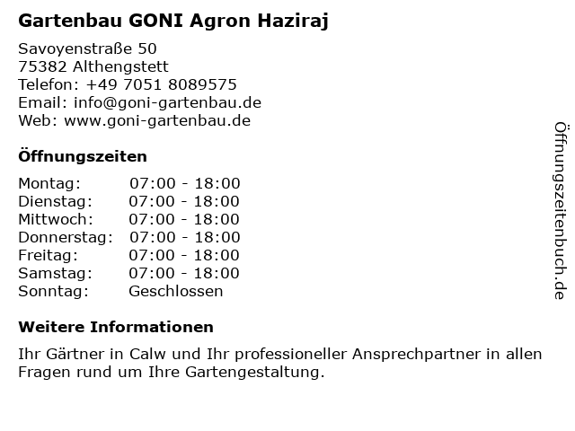 1 Landschafts-und Gartenbau Helmut Schneider (Entfernung: 2,57 km) Joannes-Fischer-Str. 6, 75397 Simmozheim 2 Gartenbau Garten-Center Floristik Franz Fink (Entfernung: 6,85 km) Rötelbachstr. 4, 75365 Calw-Speßhardt 6 |