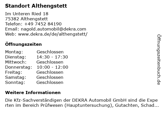 | Öffnungszeiten Standort Althengstett in Althengstett anzeigen | |