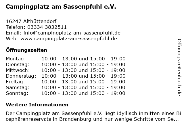 Branchen & Suchbegriffe zu Campingplatz am Sassenpfuhl e.V.:campinggeschäft, campingplatz, dauerstellplatz für wohnmobile, e.v., sassenpfuhl |