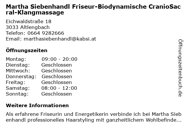 Branchen & Suchbegriffe zu Martha Siebenhandl Friseur-Biodynamische CranioSacral-Klangmassage:biodynamische, craniosacral, friseur, klangmassage, martha, siebenhandl |