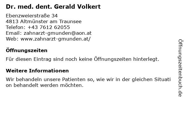 | Dr. med. dent. Gerald Volkert anrufen | |