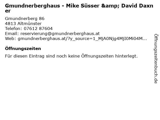 | Gmundnerberghaus - Mike Süsser & David Daxner anrufen | |