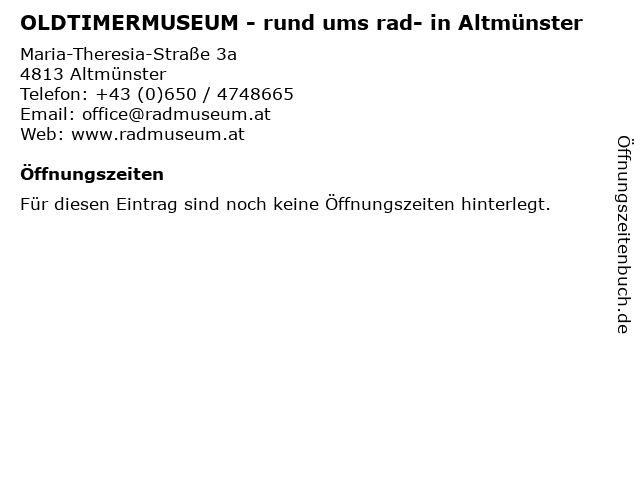 Branchen & Suchbegriffe zu OLDTIMERMUSEUM - rund ums rad- in Altmünster:altmünster, ausstellung, mai t, oldtimermuseum, rad, rund, sammlung, ums |