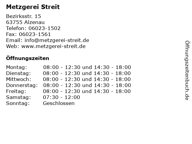 | Öffnungszeiten Metzgerei Streit in Alzenau anzeigen | |