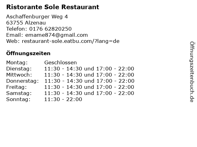 Öffnungszeiten Ristorante Sole Restaurant in Alzenau anzeigen | |