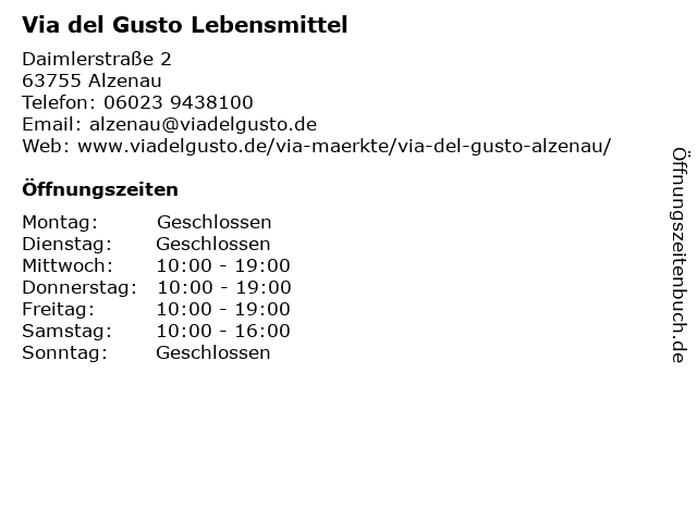 Öffnungszeiten Via del Gusto Lebensmittel in Alzenau anzeigen | |
