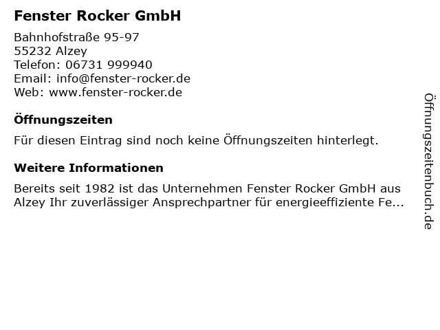 | Öffnungszeiten Fenster Rocker GmbH in Alzey anzeigen | |