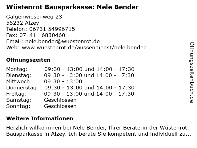 Branchen & Suchbegriffe zu Wüstenrot Bausparkasse: Nele Bender:bausparkasse, bender, nele, wüstenrot |