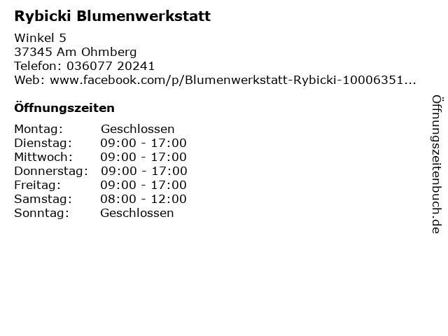 | Öffnungszeiten Rybicki Blumenwerkstatt in Am Ohmberg anzeigen | |