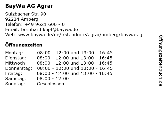 | Öffnungszeiten BayWa AG Agrar in Amberg anzeigen | |
