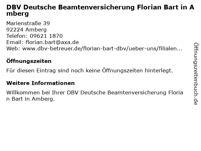 | DBV Deutsche Beamtenversicherung Florian Bart in Amberg anrufen | |