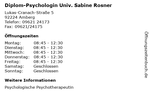 3 Praxis für Psychologische Psychotherapie - Ph Dr./Univ. Prag Hana Nemecek (Entfernung: 1,00 km) Kleinheinzstraße 4, 92224 Amberg 6 |