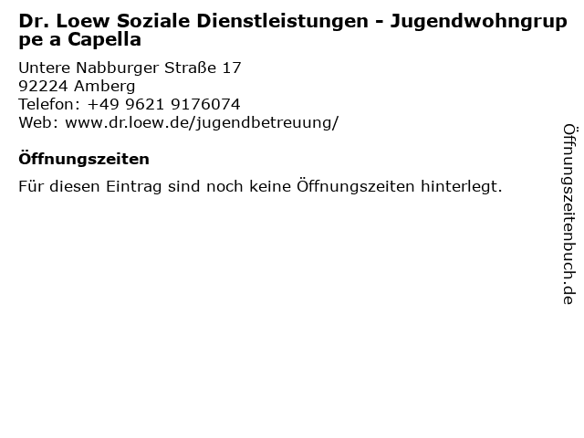 | Dr. Loew Soziale Dienstleistungen - Jugendwohngruppe a Capella anrufen | |