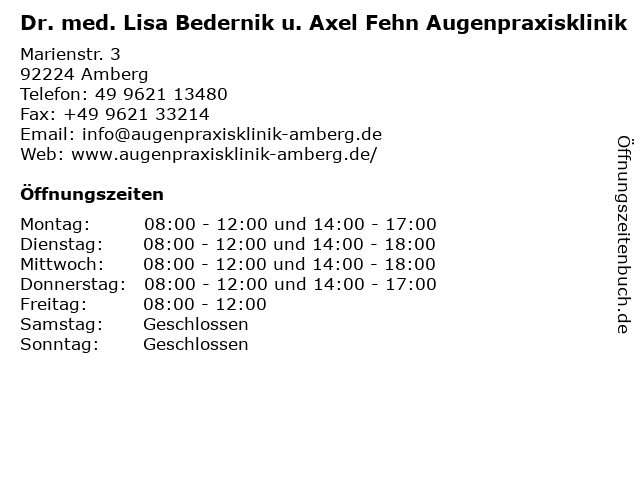 Branchen & Suchbegriffe zu Dr. med. Lisa Bedernik u. Axel Fehn Augenpraxisklinik:augenlaserpraxis, augenpraxisklinik, axel, bedernik, behandlung, dr., fehlsichtigkeit, fehn, grauer star, lisa, med., op, sehtest, u. |
