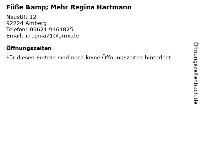 | Öffnungszeiten Füße & Mehr Regina Hartmann in Amberg anzeigen | |