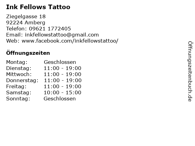 | Öffnungszeiten Ink Fellows Tattoo in Amberg anzeigen | |