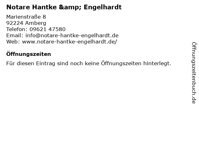 | Öffnungszeiten Notare Hantke & Engelhardt in Amberg anzeigen | |
