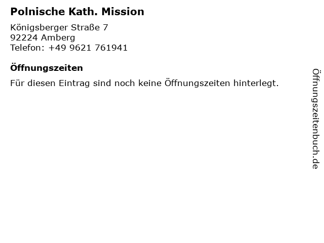 | Adresse Polnische Kath. Mission in Amberg anzeigen |