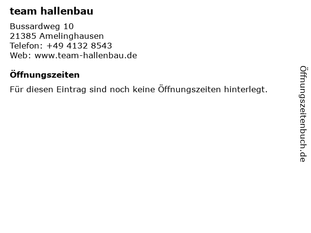 | Telefonnummer team hallenbau in Amelinghausen (+49 4132 8543) anrufen | |