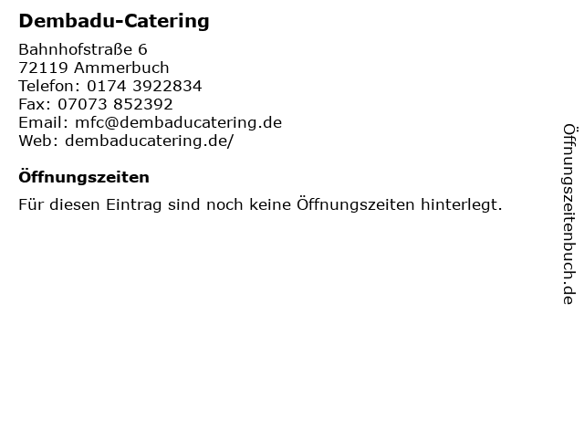 | Öffnungszeiten Dembadu-Catering in Ammerbuch anzeigen | |