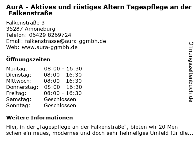 Branchen & Suchbegriffe zu AurA - Aktives und rüstiges Altern Tagespflege an der Falkenstraße:aktives, altern, an, aura, falkenstraße, rüstiges, tagespflege |