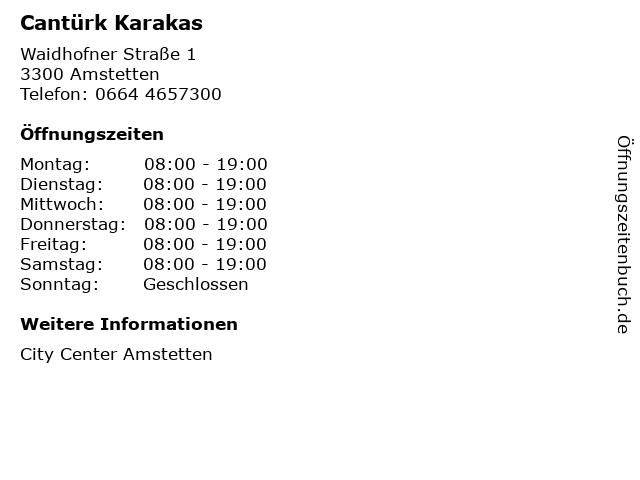 | Öffnungszeiten Cantürk Karakas in Amstetten anzeigen | |